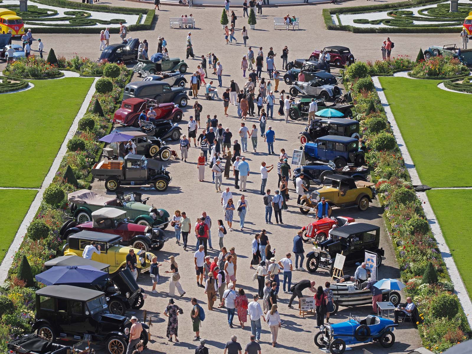 Mehr als 28.000 Zuschauer genossen am Wochenende bei strahlendem Sonnenschein im einzigartigen kreisrunden Barockgarten die klassischen Automobile von 1885 bis 1990, begleitet von live Jazz der „Strangers“ aus Frankfurt, die bei allen 21 Concours als „Hausband“ den stimmigen musikalischen Rahmen bildeten. Sonderschauen waren dank großartiger Unterstützung einzelner Fahrzeugsammler und Clubs den Themen 125 Jahre Adler, 110 Jahre Aston-Martin und 75 Jahre Abarth gewidmet.
